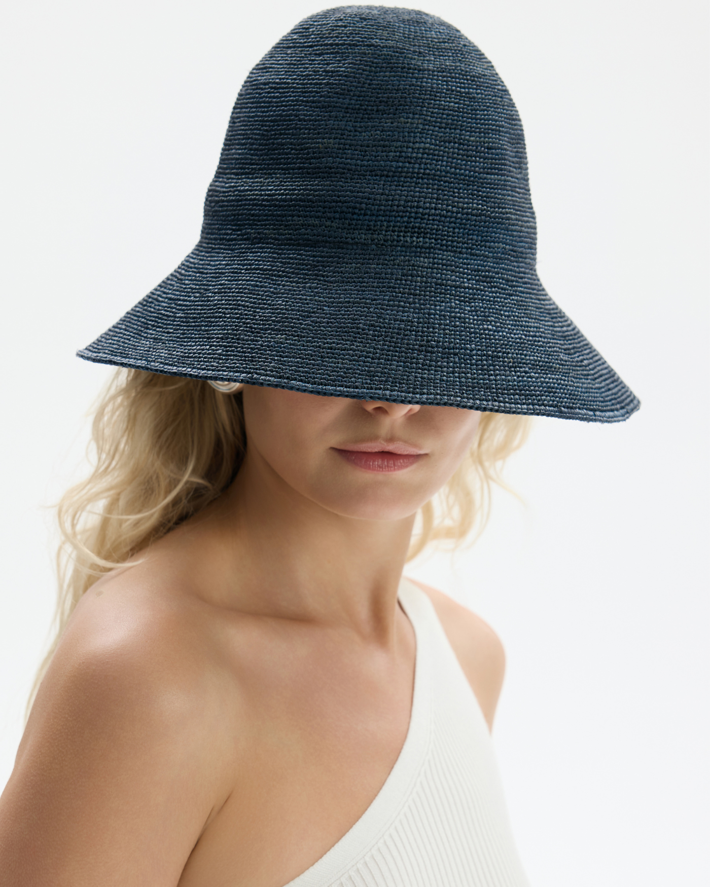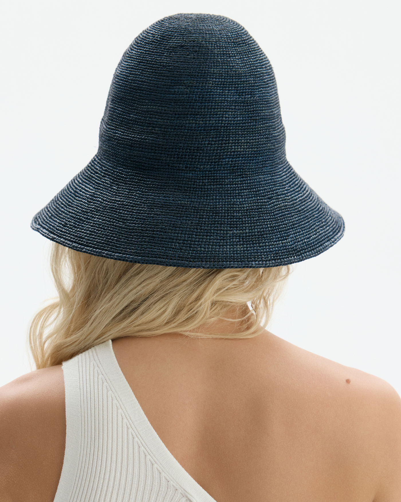 Bucket Blair z łatwością zwija się i mieści w walizce lub torebce, a po rozłożeniu wraca do swojego pierwotnego kształtu. Łączy funkcjonalność z subtelną formą - został ręcznie wypleciony z naturalnej rafii na Madagaskarze i zaprojektowany tak, by dopasowywać się do Ciebie. Rondo wykończone jest dyskretnym drutem, dzięki czemu możesz delikatnie  je formować bez obawy o utratę formy.