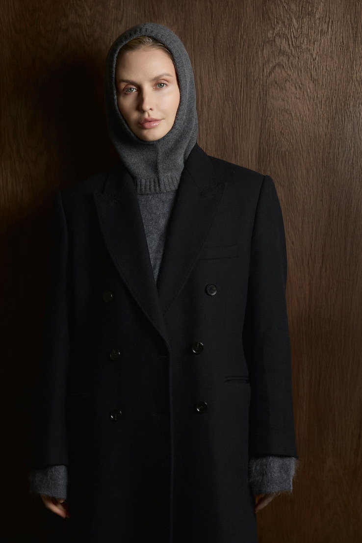 Nola is a knitted balaclava made from an ethically sourced blend of merino wool and organic cashmere. The natural lightness of the yarn, combined with excellent thermal insulation, makes the balaclava soft, warm, and exceptionally pleasant to the touch. Its timeless design and flexible ribbed finish provide a perfect fit and comfort during cold days.