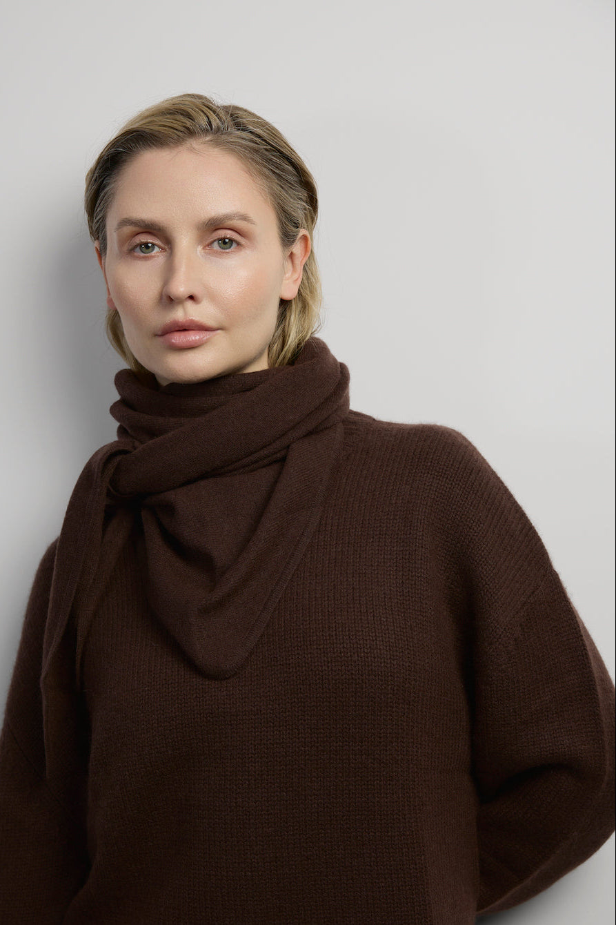 Chusta Suzette to elegancki dodatek wykonany z wysokiej jakości mieszanki wełny i kaszmiru, która zapewnia wyjątkową miękkość i komfort noszenia. Ma klasyczny trójkątny krój, dzięki czemu można ją stylizować na wiele sposobów – jako chustę na szyję, lekko zarzuconą na ramiona czy zawiązaną na głowie.